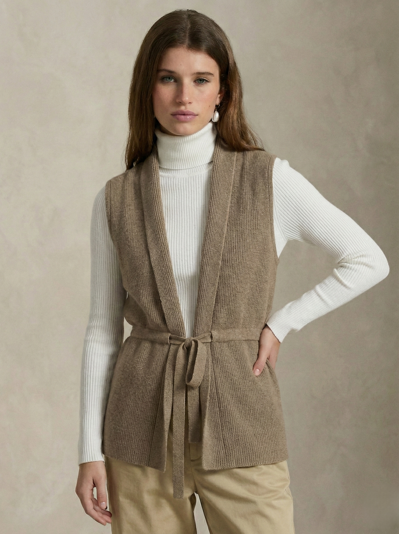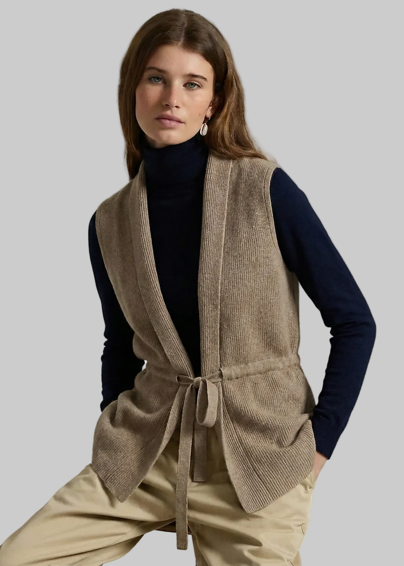 Gilet à la coupe droite et au tombé souple. Maille régulière, encolure ouverte, ceinture ton sur ton pour ajuster la silhouette. Une pièce polyvalente, facile à superposer avec élégance.